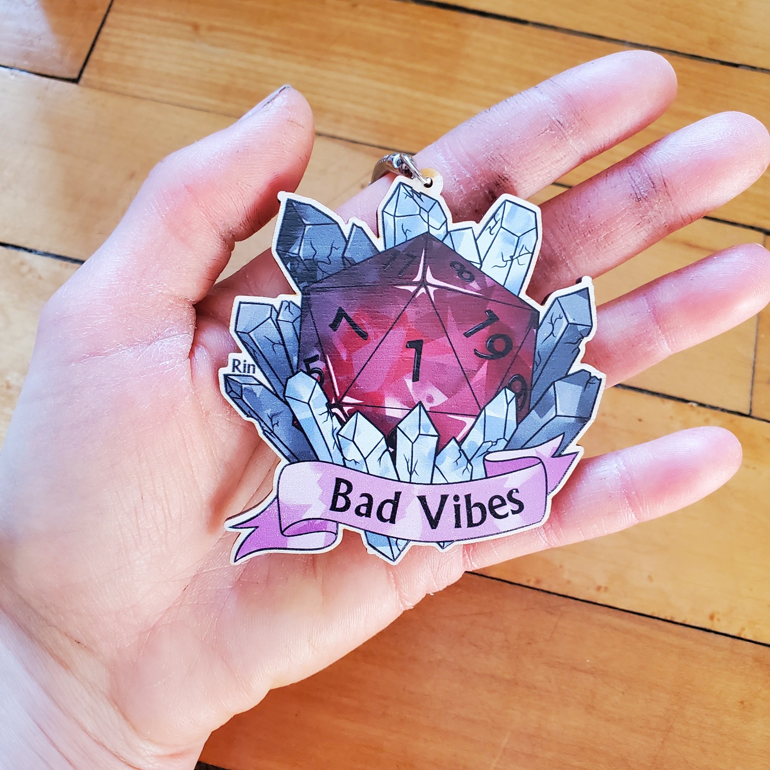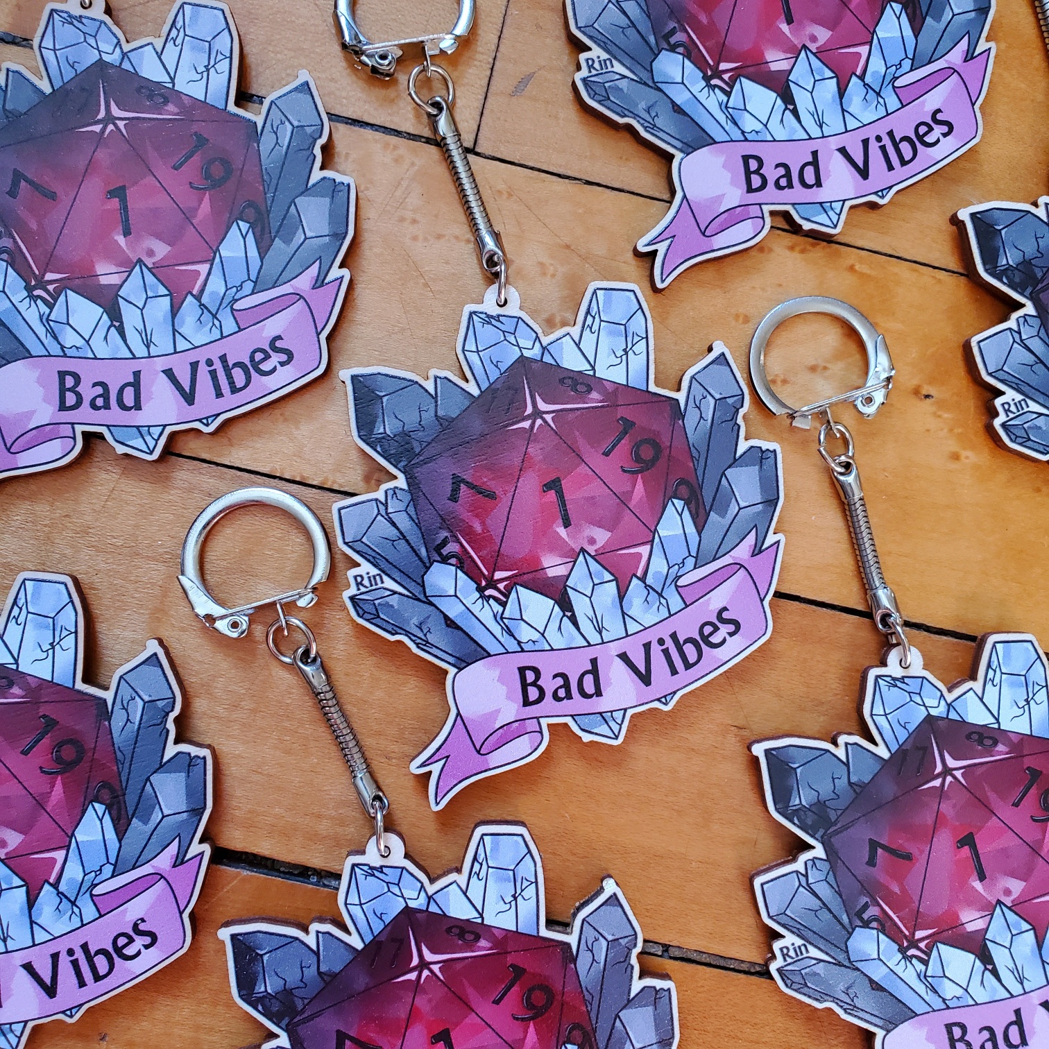 Bad Vibes D20 3" Wooden Keychain