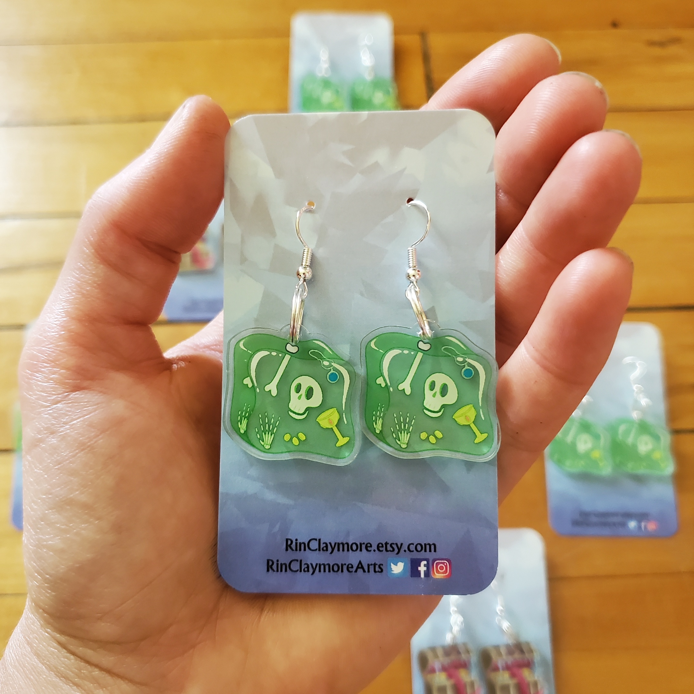 Double sided, printed on clear recycled acrylic. Colours may vary by screen. Listing is for 1 pair.